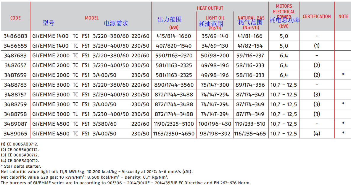 GI/EMME1400 GI/EMME2000 GI/EMME3000 GI/EMME4500