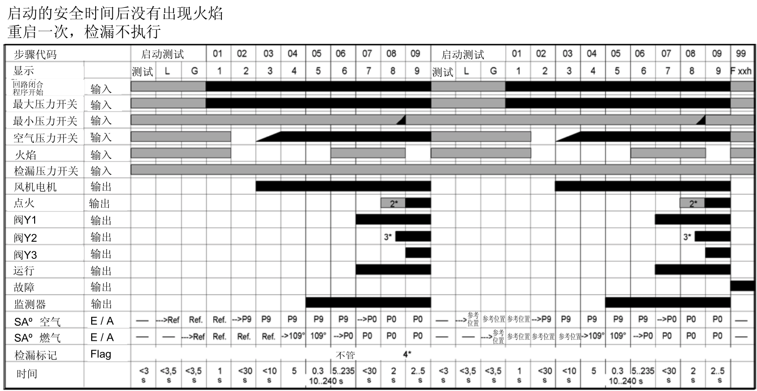 如果啟動安全時間過后沒有火焰出現(xiàn),則故障鎖定。